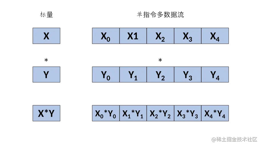 单指令多数据(Single Instruction, Multiple Data, SIMD),即单条指令一次性处理大量数据: