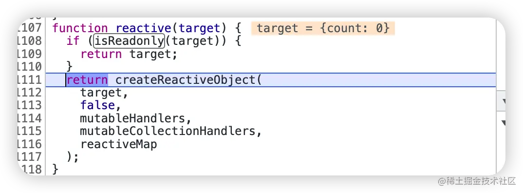 单步进入 reactive 函数调试