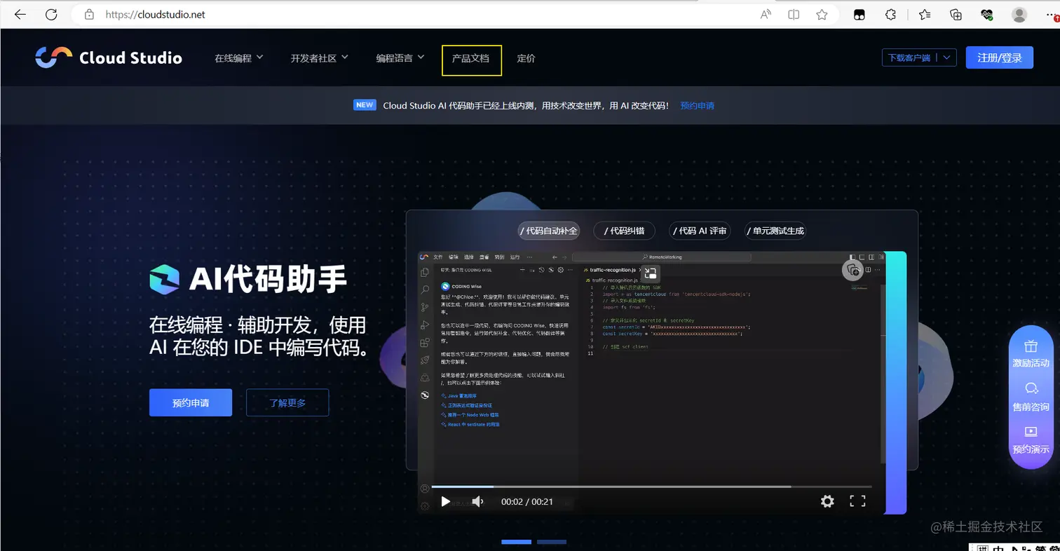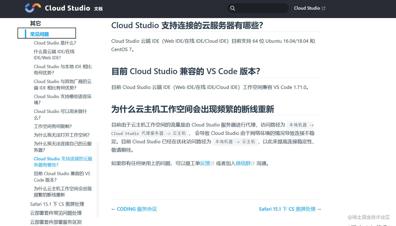 对于新手来说,产品文档可以帮助我们更好地了解产品的功能和用途。如果不熟 CloudStudio 的使用方法,可能会遇到许多问题,这会导致浪费时间。因此,在使用CloudStudio 之前,我建议大家先看一下 产品文档: