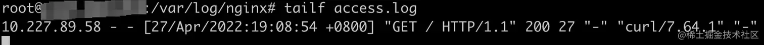 访问本地服务80端口现象与上相同,nginx四七层转发日志如下: