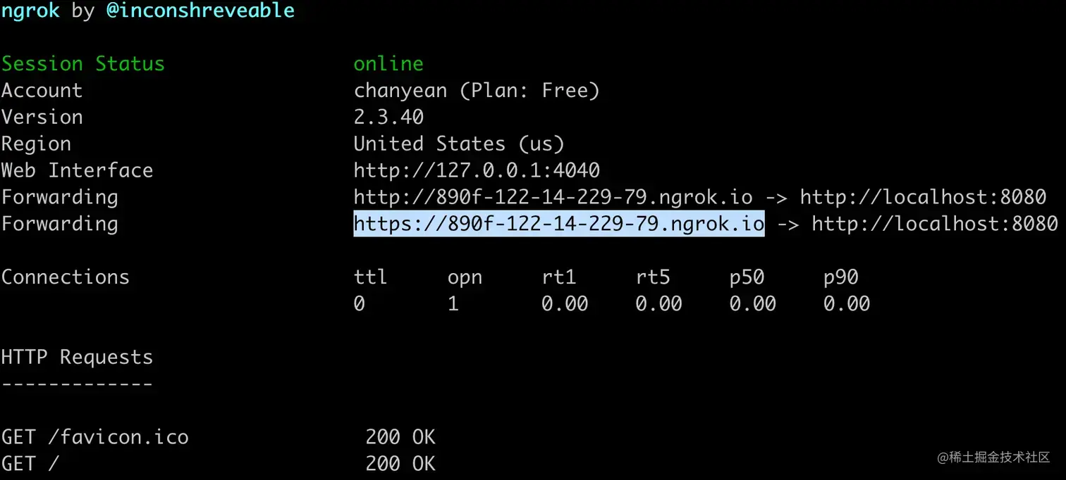命令:./ngrok http 8080(将本地8080端口开放到公网)