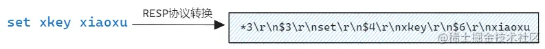 比如我们输入 set xkey xiaoxu 命令会转换成如下格式: