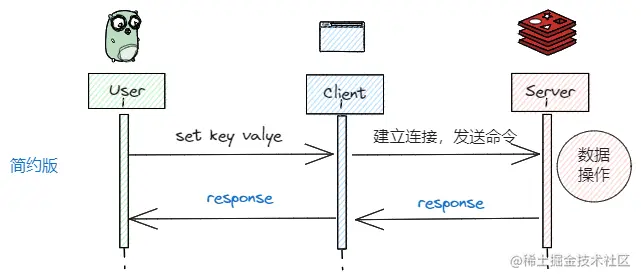 面对这个问题想必大部分朋友心里的答案是:客户端发送命令给到服务端,服务端收到执行之后再处理将命令执行结果返回给客户端,简单来说如下图: