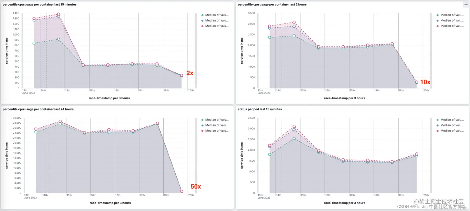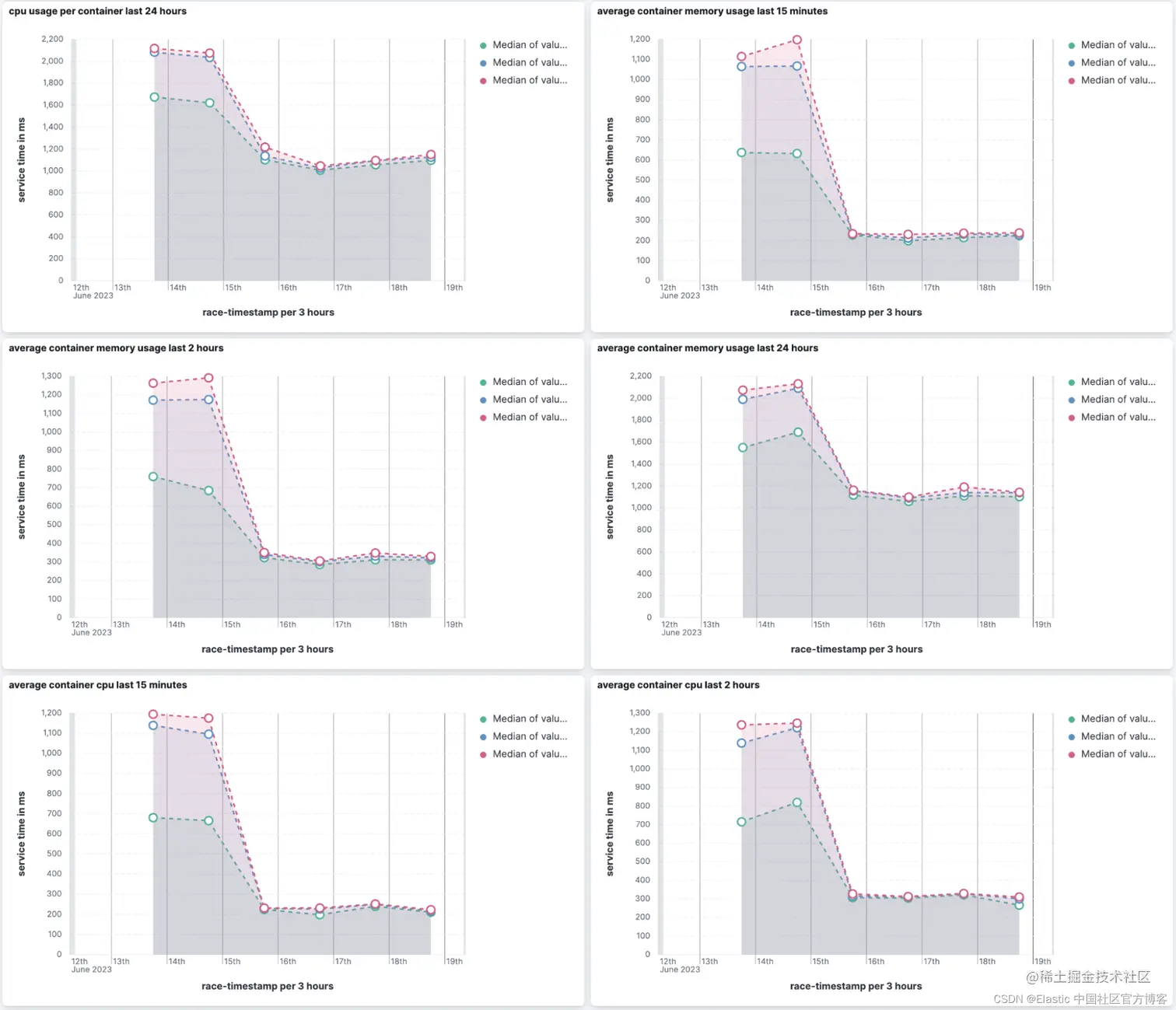 - 我们改进了 Elasticsearch 的默认刷新行为。 默认情况下,仅当分片处于搜索活动状态时才会发生刷新,并且分片在搜索活动 30 秒后进入搜索空闲状态。 当分片处于搜索空闲状态时,不会发生计划刷新,这有利于索引吞吐量。 然而,搜索一个搜索空闲分片可能会显着增加查询时间 - 这在 Kibana 中加载可视化时会很明显,因为在闲置一段时间后,仪表板加载速度会很慢。 我们进行了两项更改,将聚合搜索的延迟减少了 90% 以上,因为分片处于搜索空闲状态。