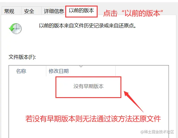 步骤2:右键点击该文件夹,选择 【属性】, 并点击 【以前的版本】;