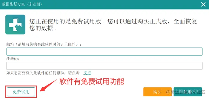 步骤1:将软件安装后运行,点击 【免费试用】 后将会进入软件主页面;