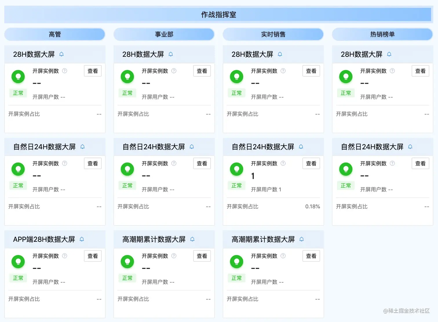 •数据高稳定性:大屏一般会投放在高管作战指挥室、各业务线指挥室等,我们要以高质量交付,方便业务基于实时数据调整,避免跳数、刷新异常等问题影响业务看数,从而错过最佳决策时间。