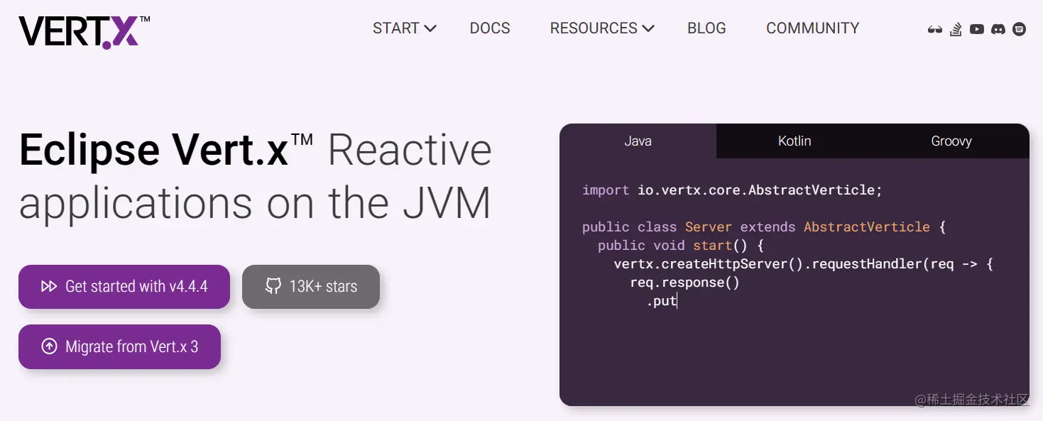 - 社区活跃:Vert.x拥有一个活跃的开源社区,持续开发和更新,使得它保持在技术前沿,并且有很多贡献者为其提供支持和扩展。