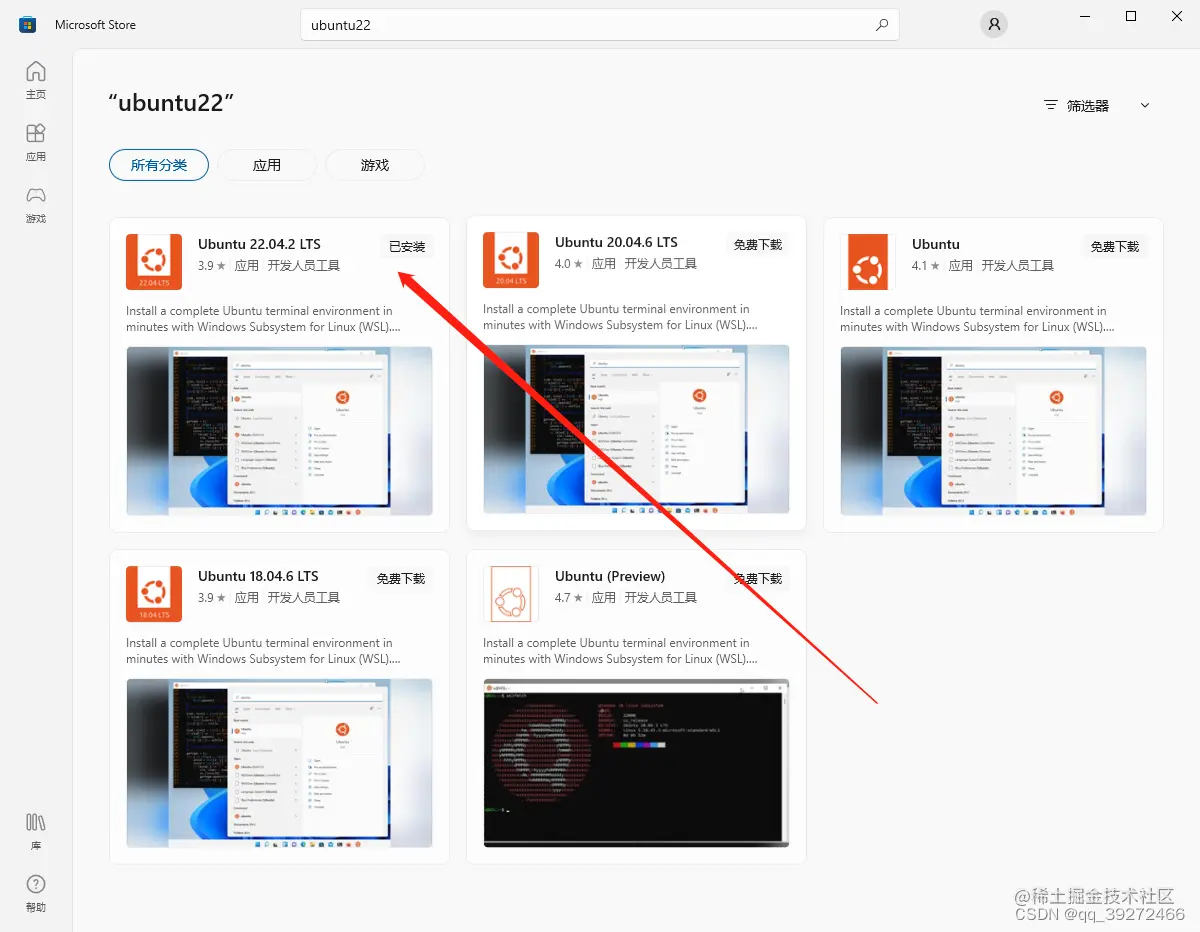 2. 你去Windows商店安装Ubuntu22.04或者20版本