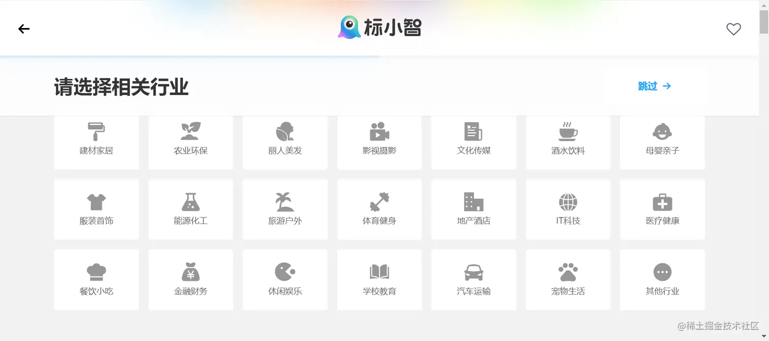 第二步:选择相关行业,AI引擎将根据行业推荐适合的logo风格和商标类别