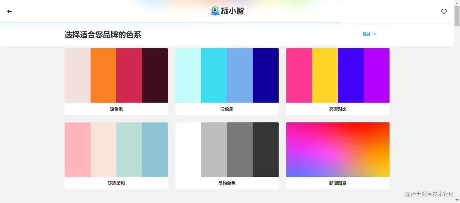 第三步:选择适合品牌的色系,不知道选什么颜色可以直接点击跳过