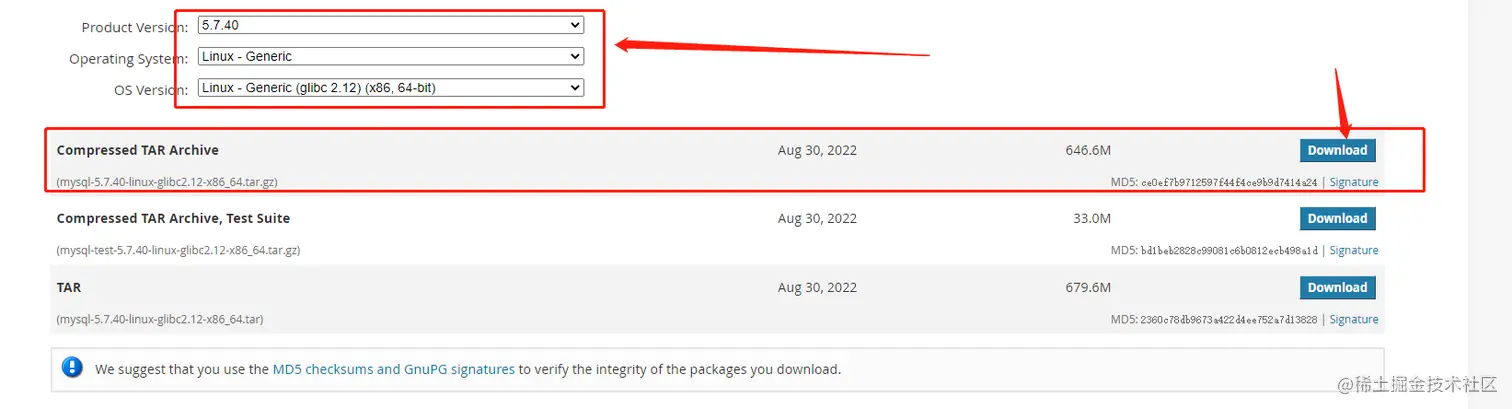 操作步骤(附图):官网下载地址→MySQLrpm包官网下载