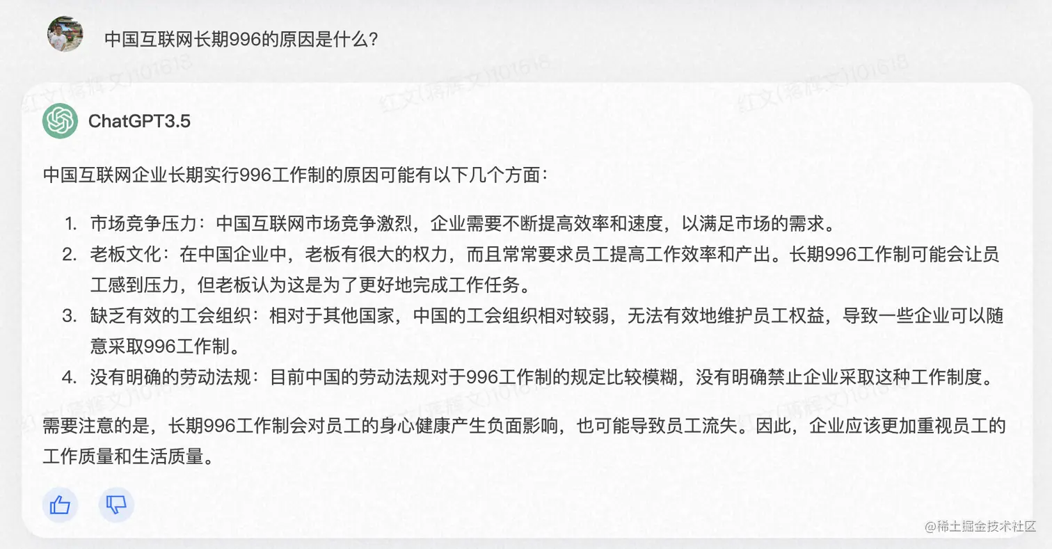 比如我们今天就尝试解释一下,为什么程序员或者相关的互联网公司喜欢996?核心答案就在于成本,因为中国从改革开放以来,人力成本是特别廉价的。所以如果让员工来996的情况下的话,可以把大部分的国际生成产品成本拉低到一个相当低的水平,并且这个就能够和国内外的公司进行竞争了。这也是为什么中国这几十年大量地出口,带动外贸发展,使得整个经济大幅度提升。