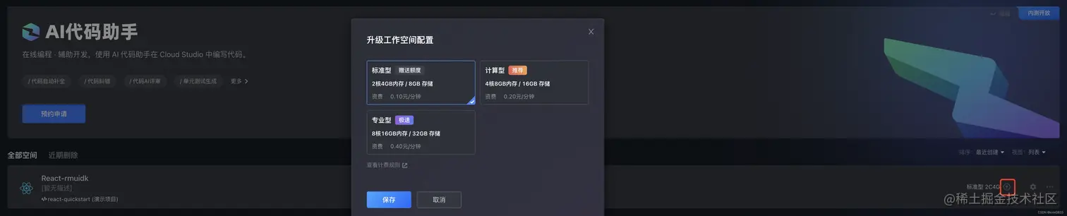 Cloud Studio 团队基于老用户使用体验角度和新用户上手成本考虑,现实行每月赠送 3000 分钟的工作空间免费时长,用户放心试,满意再购买!