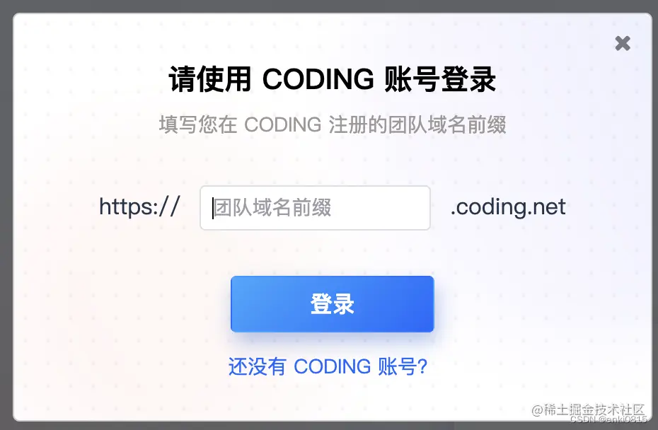 输入对应的团队域名前缀,点击登录,即可跳转到 CODING 平台进行相关授权。