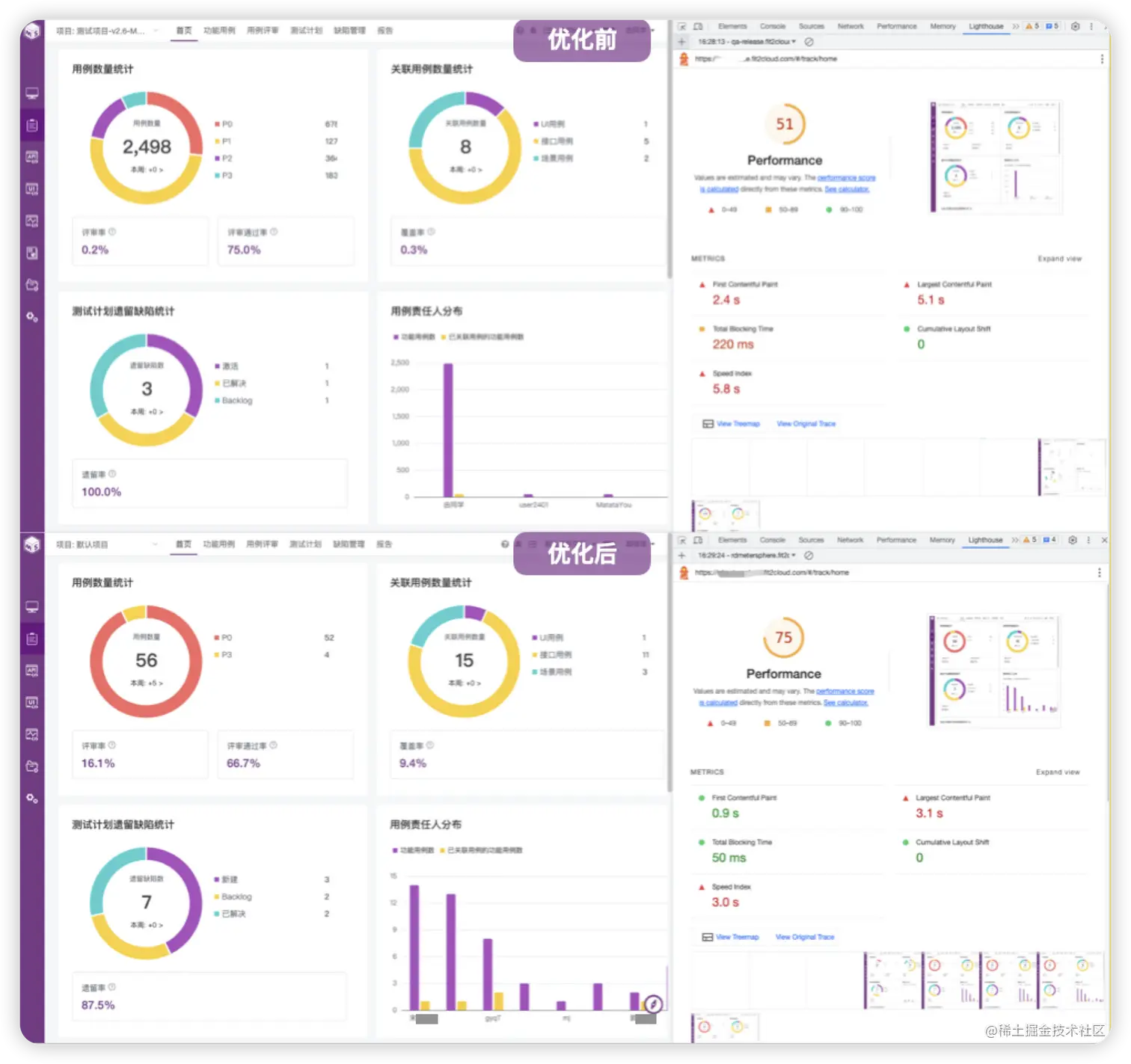 经过这些前端优化措施后,MeterSphere平台的性能优化效果明显,优化后最大的包文件尺寸也在330KB内,整体加载资源大小减少超过60%,完全加载时间从20s缩减至7.5s左右。