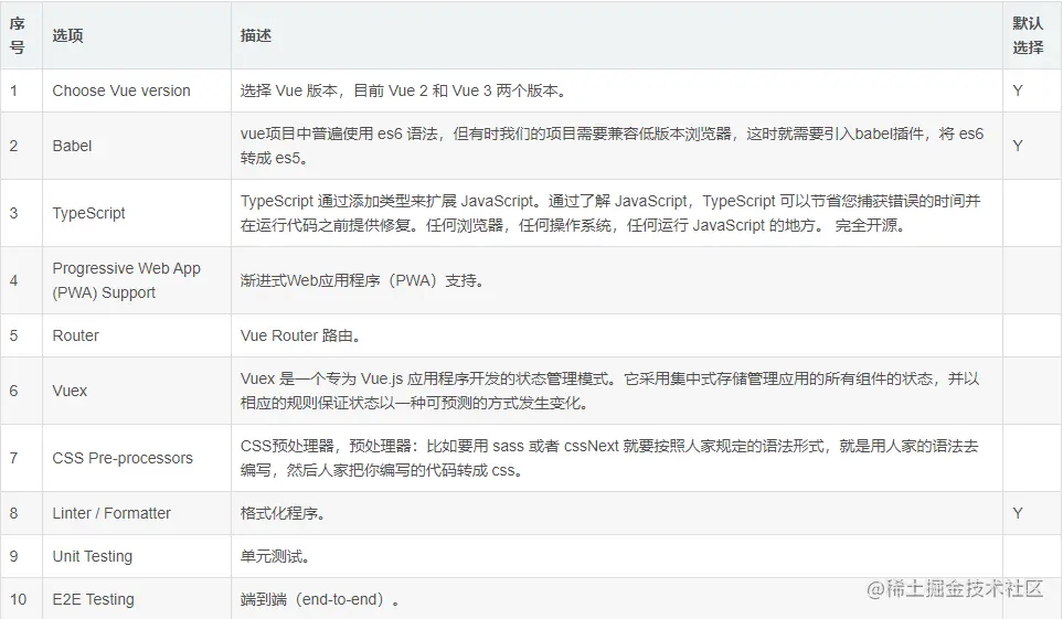 ? Check the features needed for your project: Choose Vue version, Babel, Router, Vuex, CSS Pre-processors, Linter