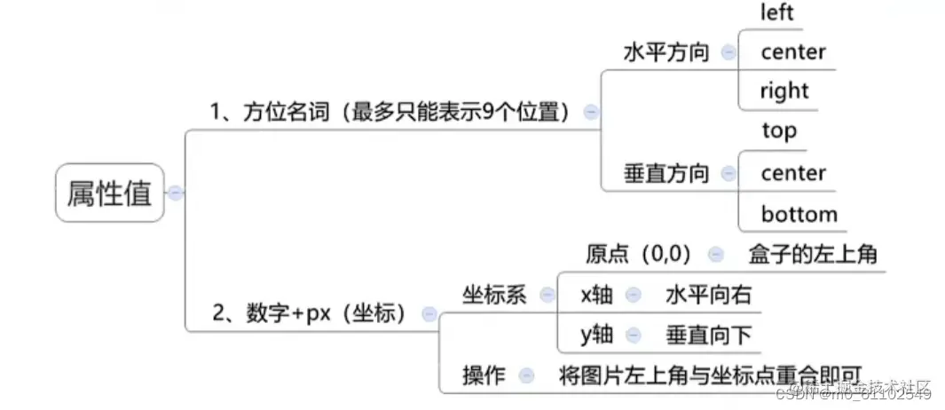 属性值:background-position:水平方向位置 垂直方向位置
