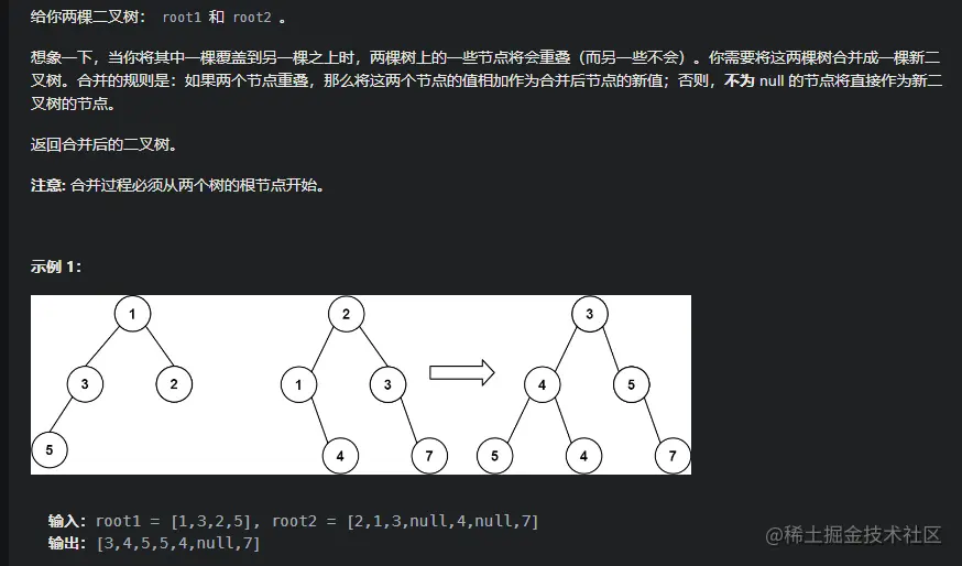 public TreeNode mergeTrees(TreeNode root1, TreeNode root2) {