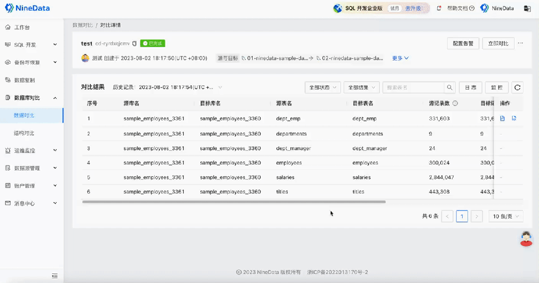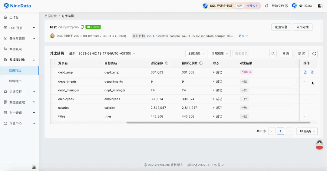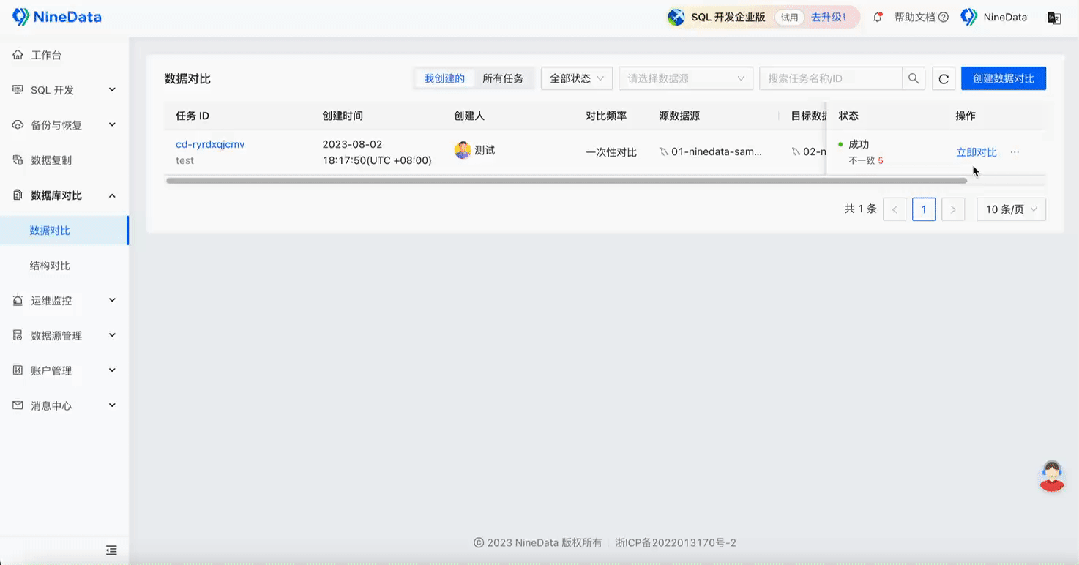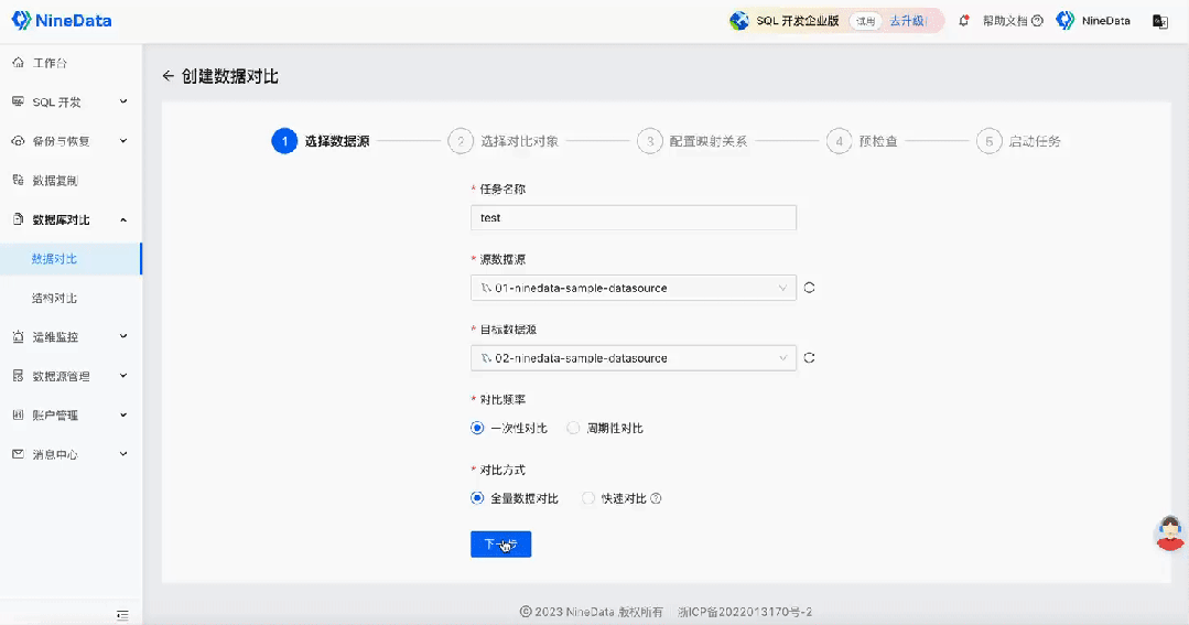 3. NineData 数据对比的操作演示