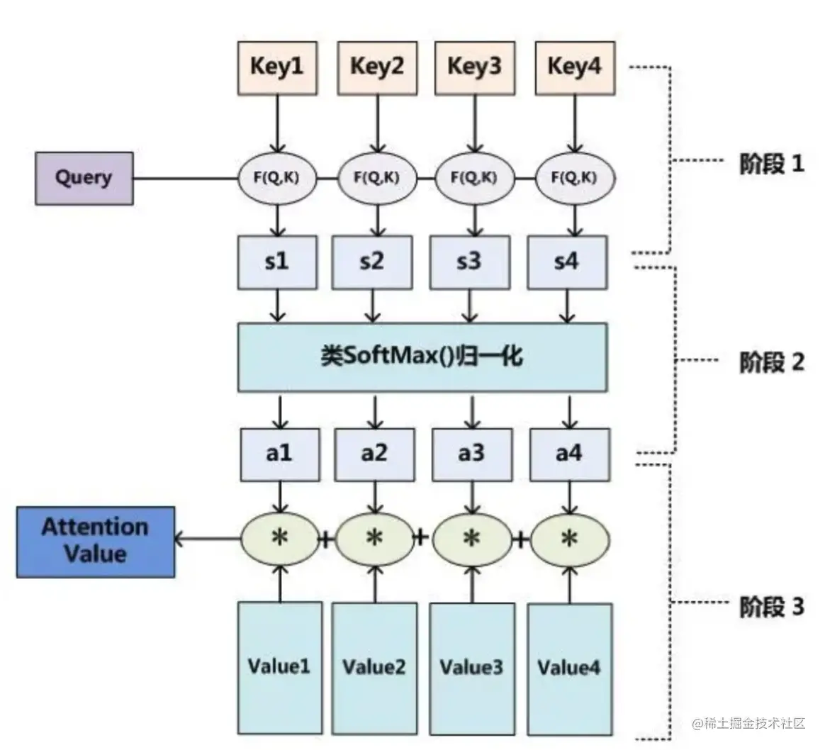 - 根据Query和Key计算权重系数)(又细分为两个部分)