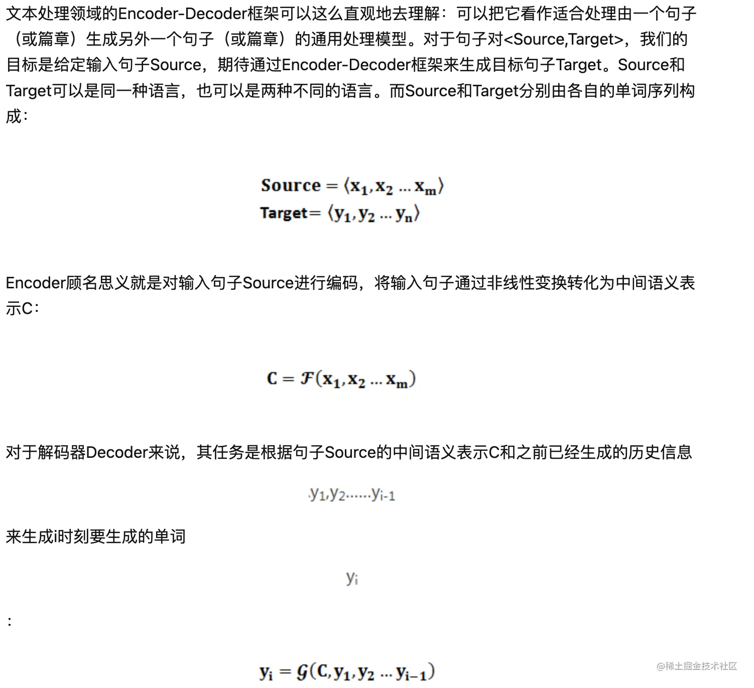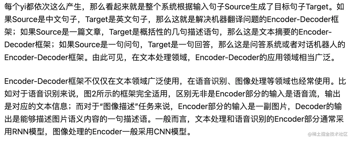 - 目前大多数注意力模型是存在于Encoder-Decoder框架中的,但是注意力模型其实可以看作是一种通用的思想,其本身是不依赖于特定框架的,个人理解其更像是数学中的一条定理,我们拿着这个定理去解决数学问题。