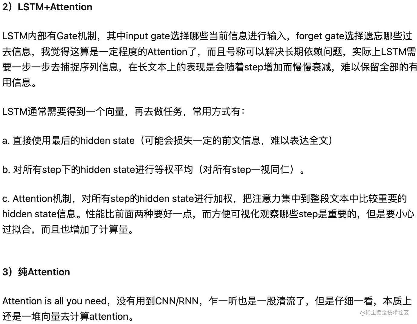 - 优化算法的限制:LSTM只能在一定程度缓解RNN中的长距离依赖关系,且记忆能力并不高,个人理解是觉得记忆的不够精准有点碰运气的成分没有针对性。