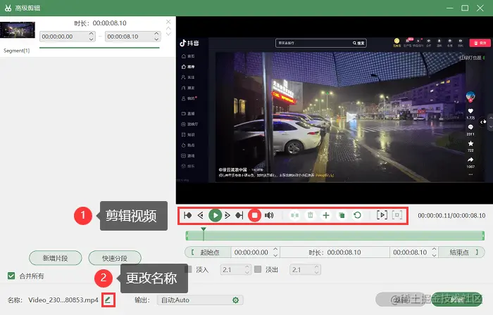 步骤三:录制完毕后,可以直接对视频进行剪辑,在 “高级剪辑” 页面进行后期处理,然后保存到指定的位置。