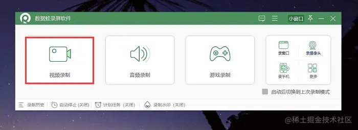 步骤一:在官网下载数据蛙录屏软件,安装并打开它,在主页我们选择视频录制模式,它可以帮助我们录制清晰的抖音视频。