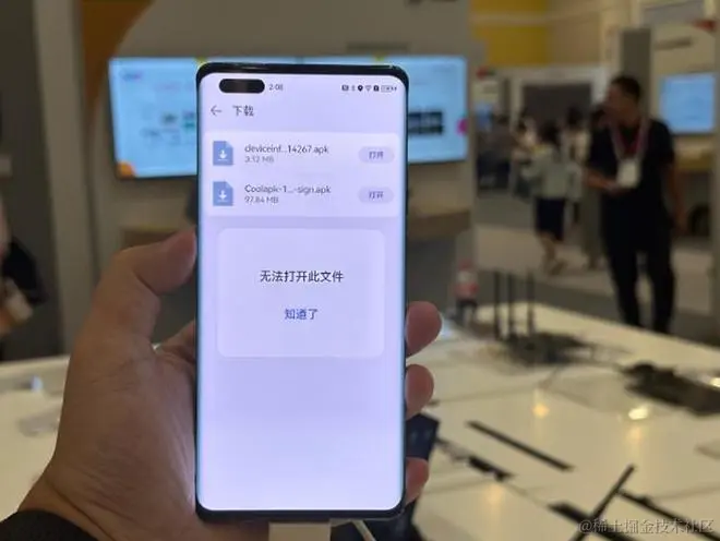 据了解,HarmonyOS NEXT系统底座全线自研,砍掉传统的AOSP代码,仅支持鸿蒙内核和鸿蒙系统的应用,有体验者上手体验以后表示在打开安卓APK文件时,系统会提示“无法打开此文件”。