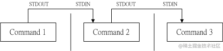 如此一来,使用ls命令输出的内容就能够被less读取,并且利用less的功能,我们就能够前后翻动相关的信息了。其中的关键就是这个管道命令|。管道命令|仅能处理前一个命令传来的标准输出信息,而对于标准错误信息并没有直接处理能力。那么整体的管道命令可以使用下图表示: