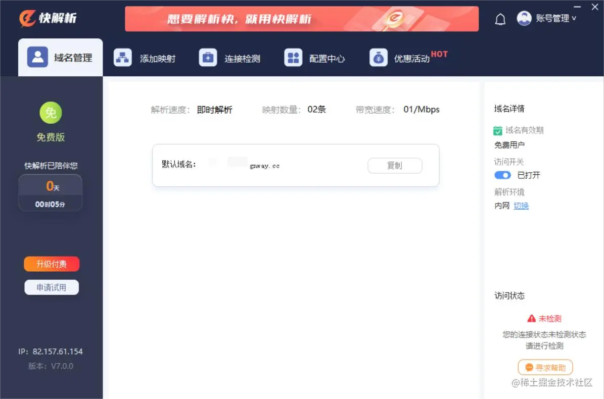 让外网访问内网,主要原理方案是将内网地址变成外网地址,在目标内网操作设置快解析添加内网IP端口映射成域名。在让外网访问前,先明确自己本地内网的具体内网地址端口协议信息,并确保在内网正常访问先。注意协议统一,如本地端口应用是用了http,则映射后,外网访问也是http。