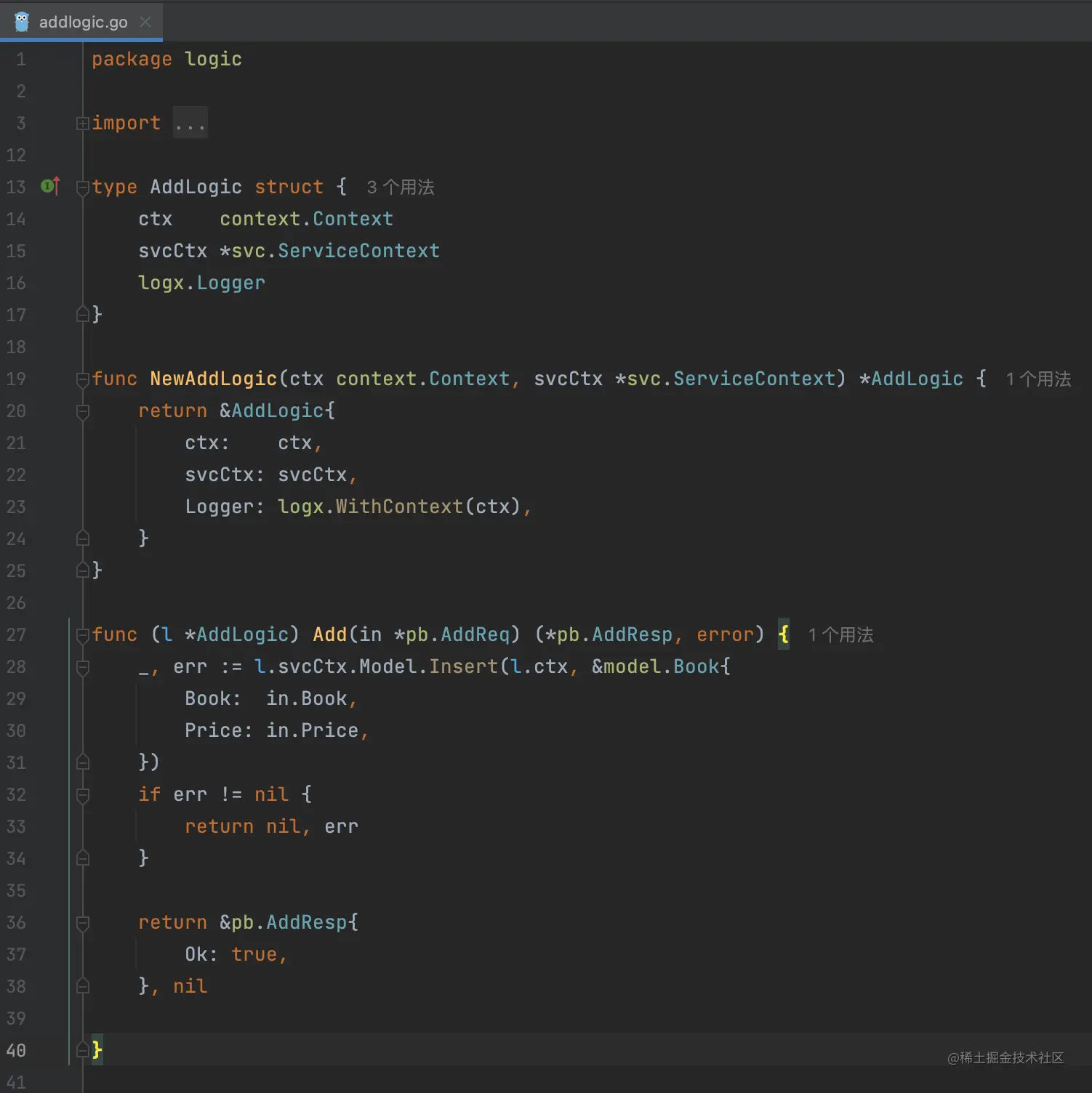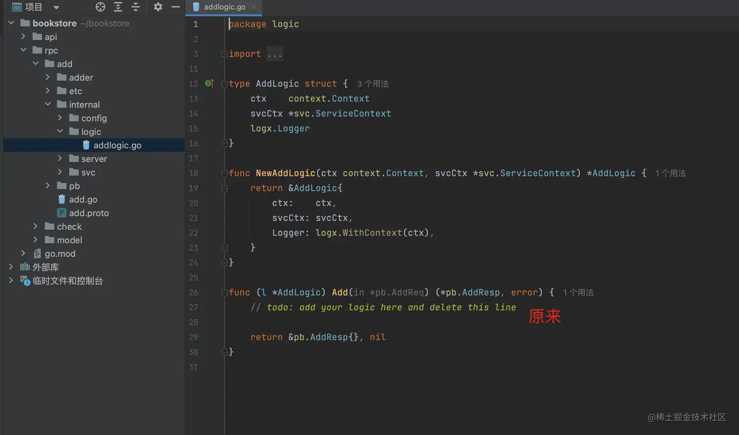 │ │ └── addlogic.go // add业务逻辑在这里实现