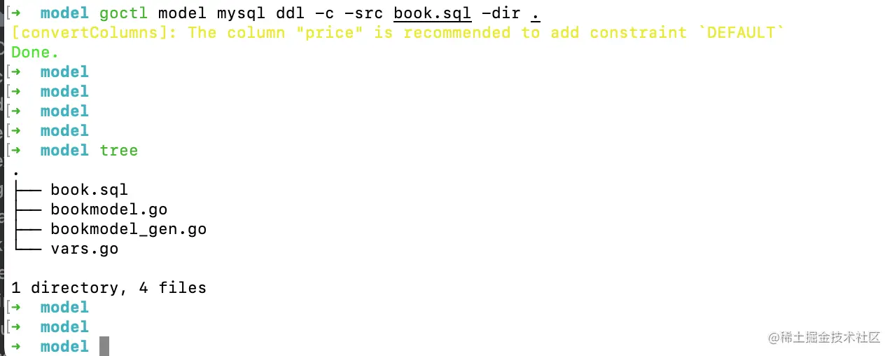 mkdir -p rpc/model (不过一般习惯把这个model文件夹抽出来,和api,rpc在一层)