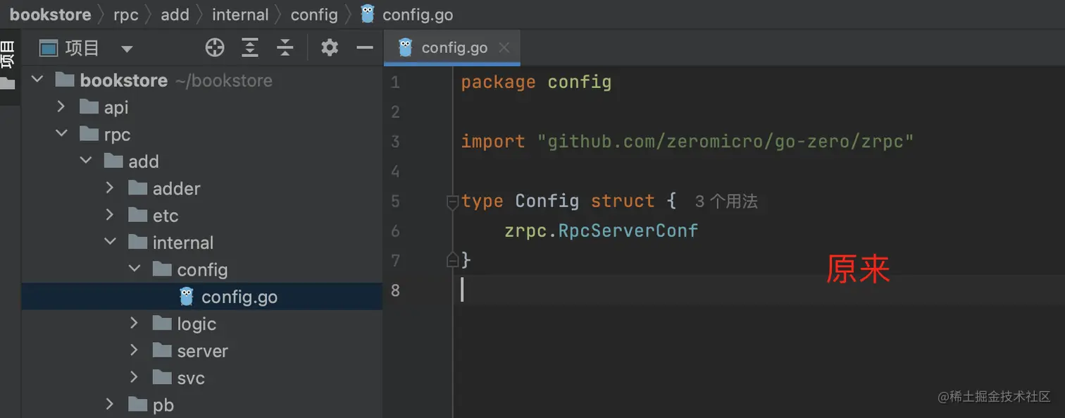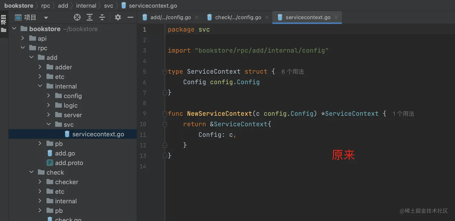 修改rpc/add/internal/config.go和rpc/check/internal/config.go,如下: