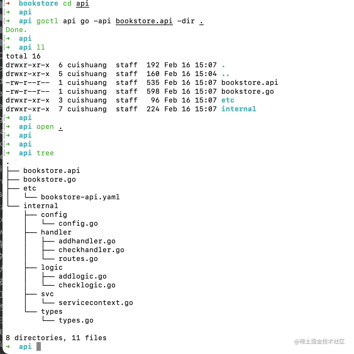 实现逻辑可以修改internal/logic下的对应文件(如果接口较多,可以在.api里定义不同的group,使用goctl生成代码时,会自动在logic下根据group名称创建不同的文件夹)