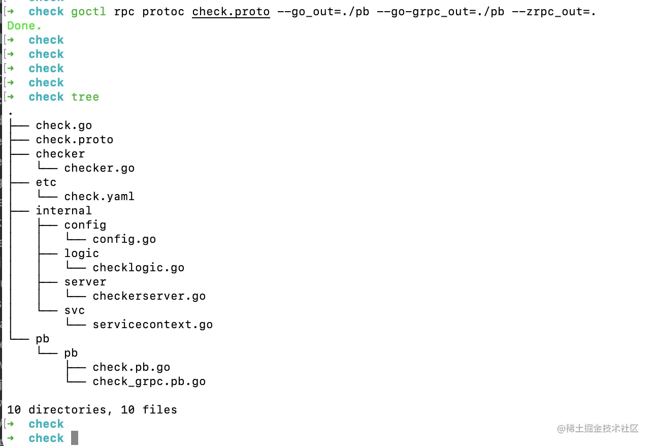 goctl rpc protoc check.proto --go_out=./pb --go-grpc_out=./pb --zrpc_out=.