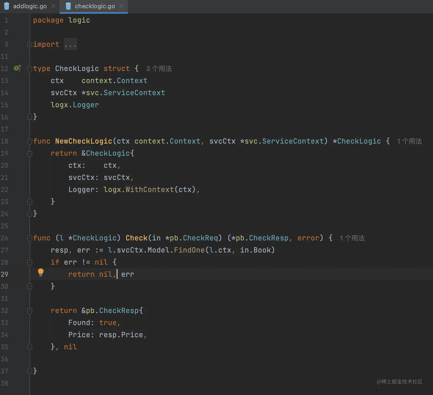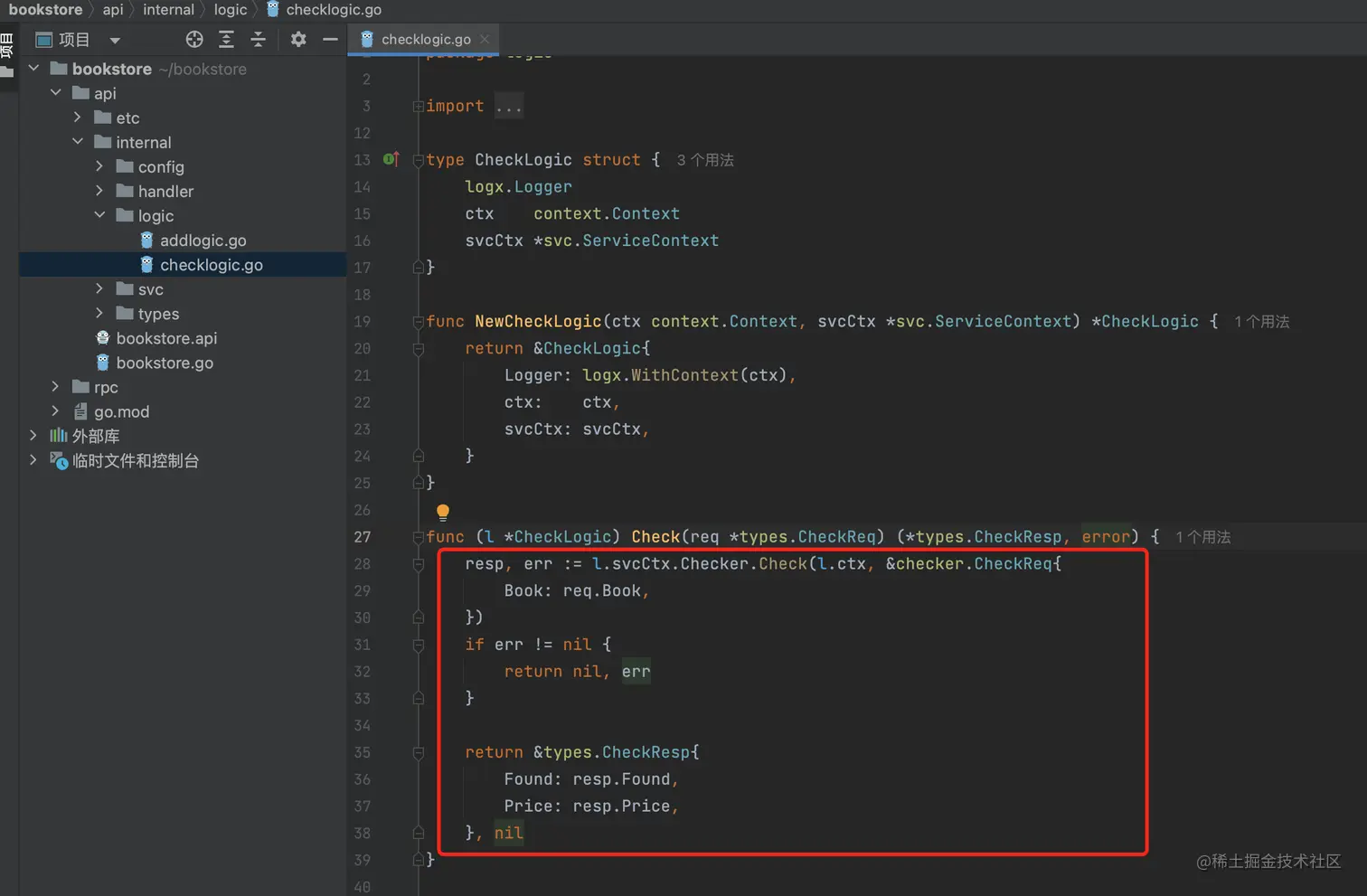 修改rpc/check/internal/logic/checklogic.go,如下: