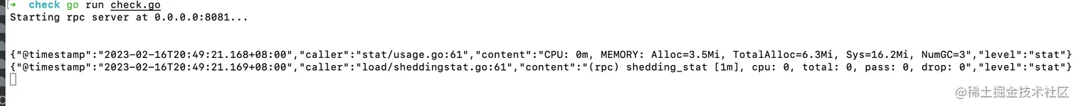 {"@timestamp":"2023-02-16T16:31:09.658+08:00","caller":"stat/usage.go:61","content":"CPU: 0m, MEMORY: Alloc=2.5Mi, TotalAlloc=2.5Mi, Sys=14.5Mi, NumGC=0","level":"stat"}