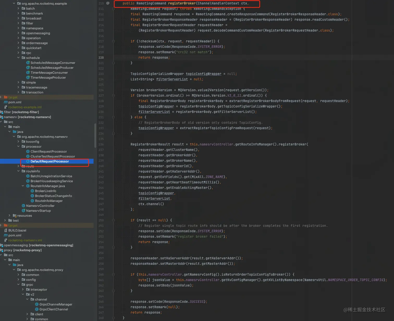 org.apache.rocketmq.namesrv.processor.DefaultRequestProcessor#registerBroker