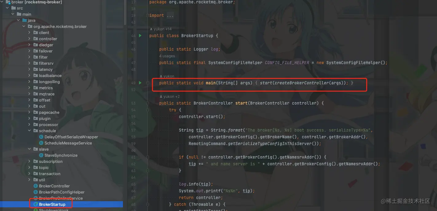 这里源码入口我们就从broker启动开始查看吧,然后慢慢到NameServer