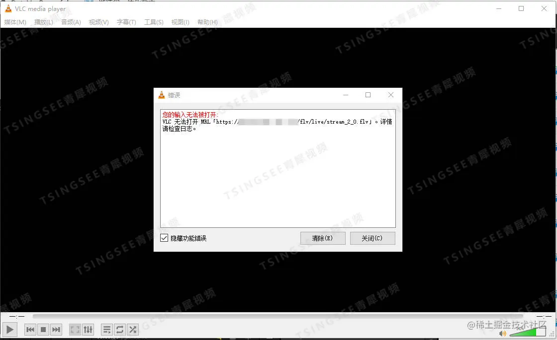 技术人员通过vlc的调试模块了解到了问题的原因:因为用户使用的是我们平台自带的HTTPS证书,并通过公网映射的方式获取到视频流,但是被vlc限制住了,不过视频流依然是活性的。