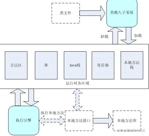 方法区:方法区和JAVA堆一样,是各个线程共享的内存区域,用于存储已被虚拟机加载的类信息、常量、静态变量、即时编译器编译后的代码等数据。