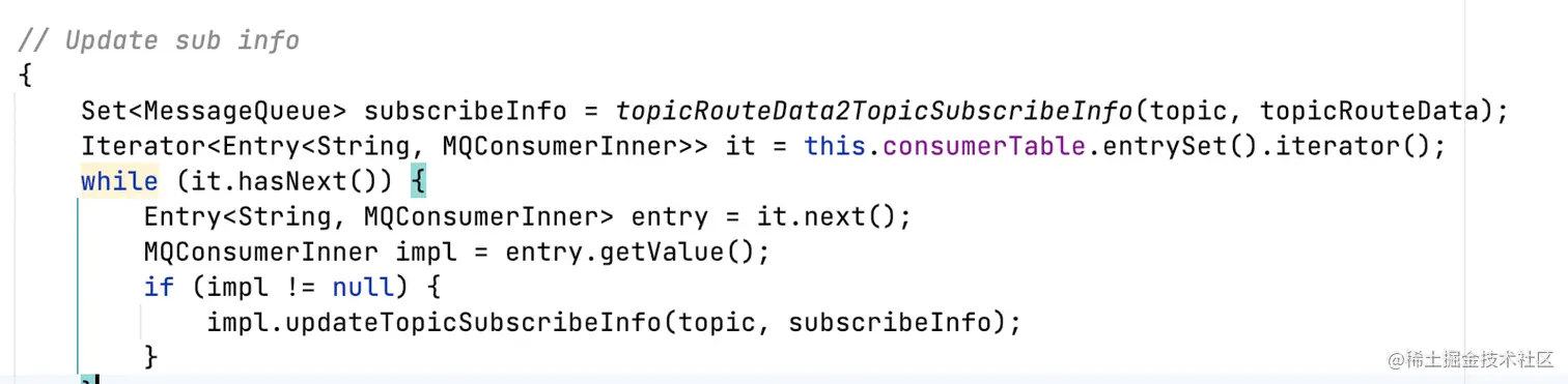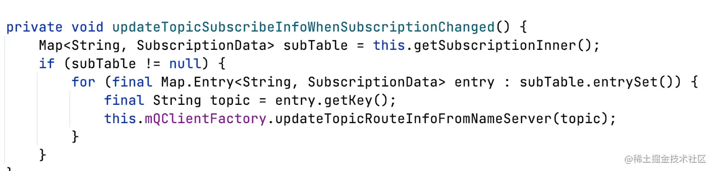 DefaultMQPushConsumerImpl#updateTopicSubscribeInfoWhenSubscriptionChanged: