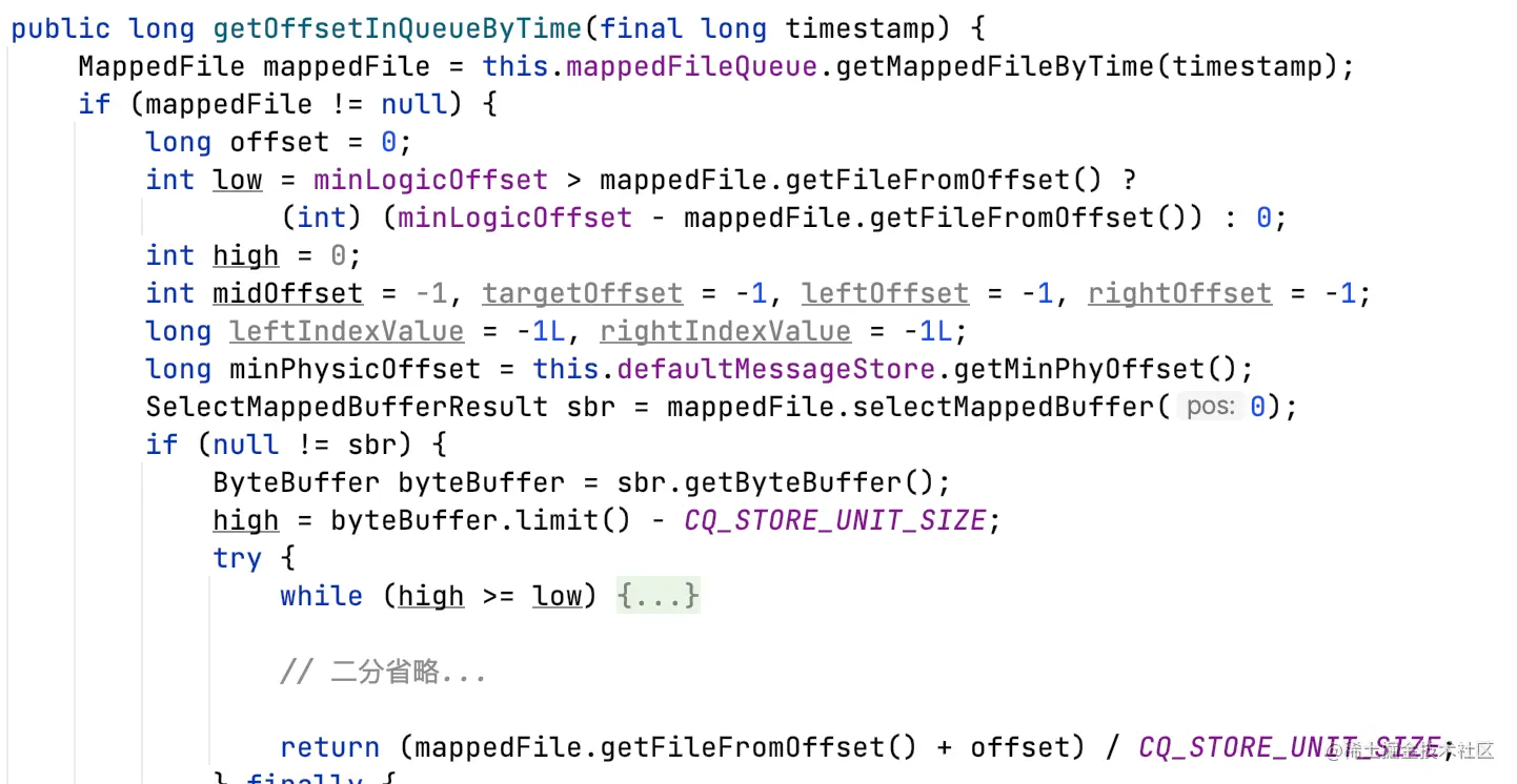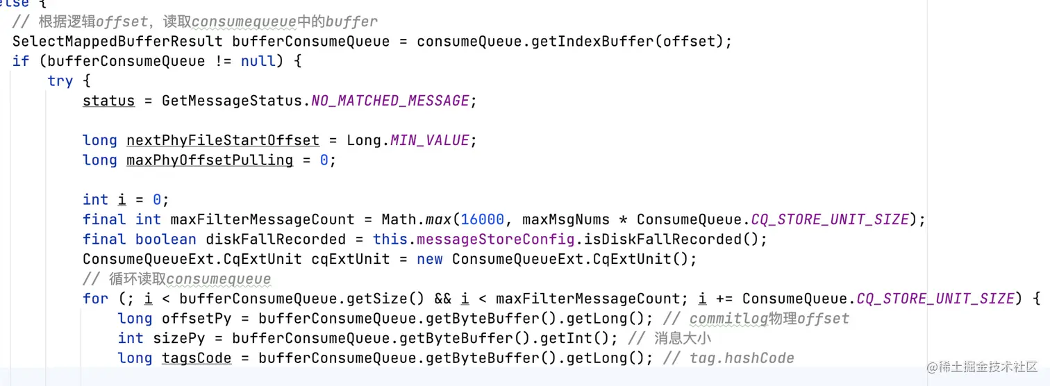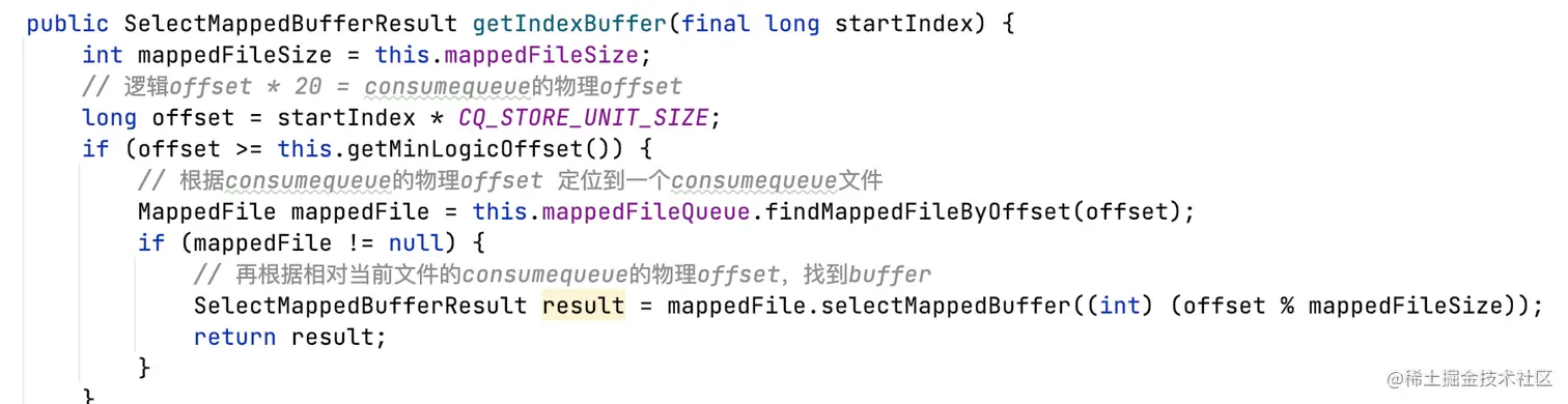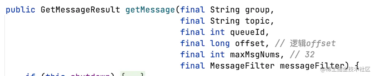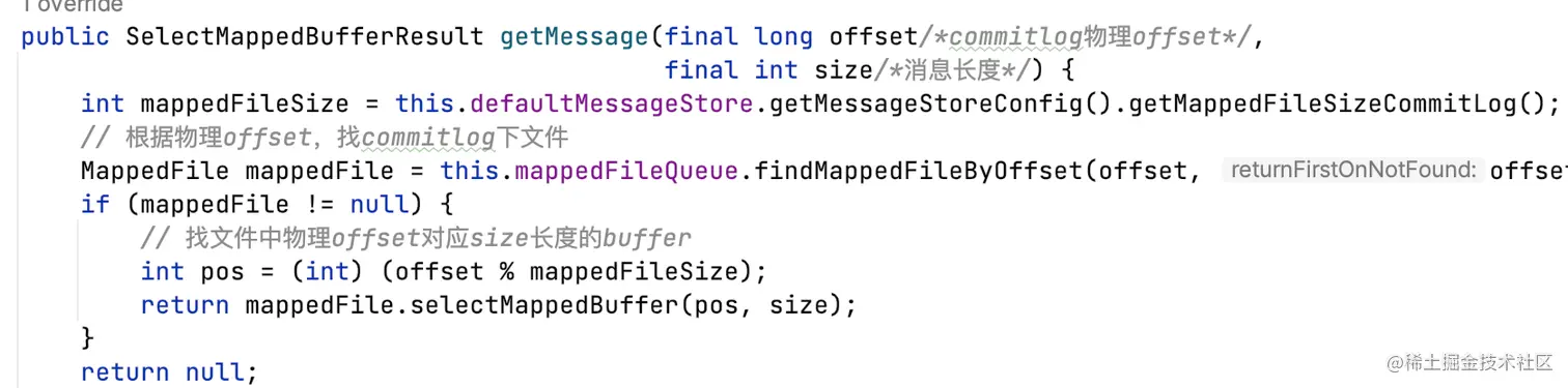 根据topic、queueId、逻辑offset获取消息。