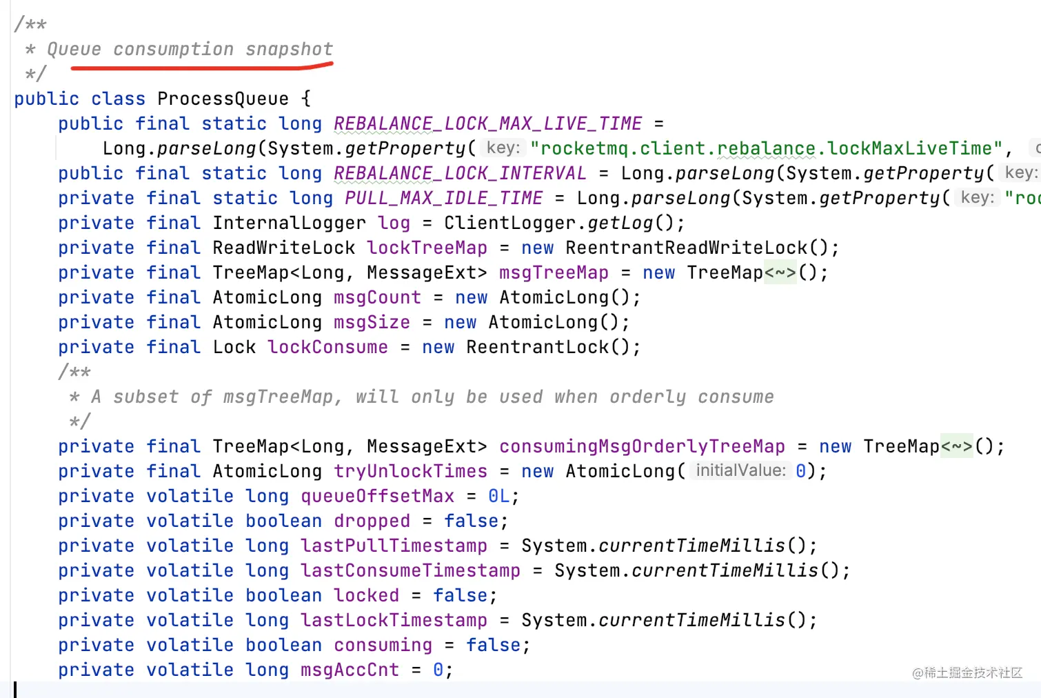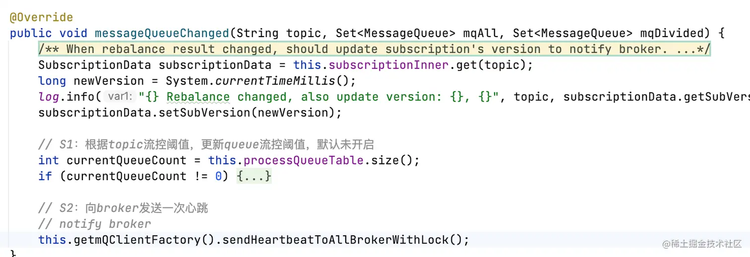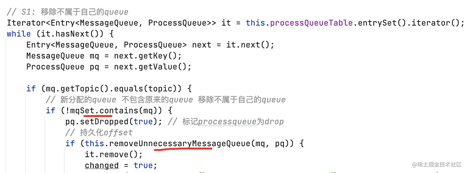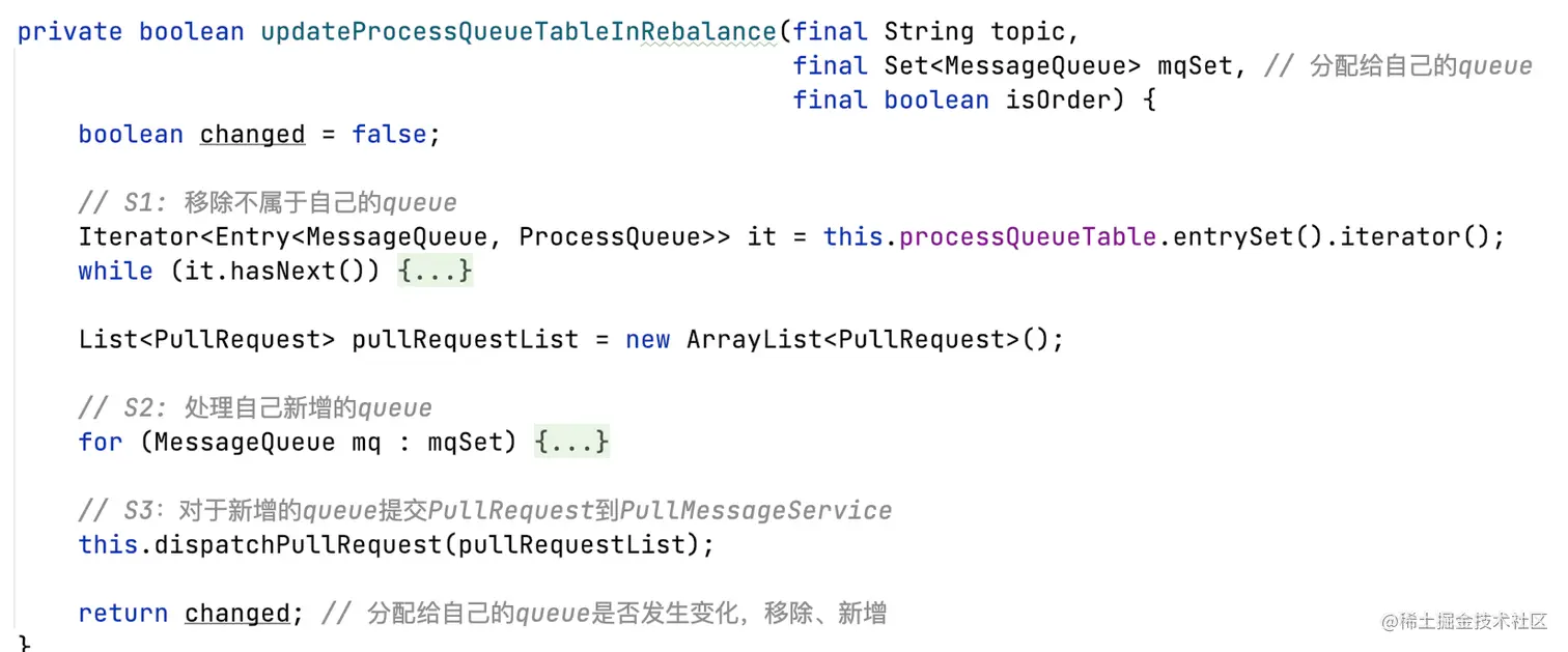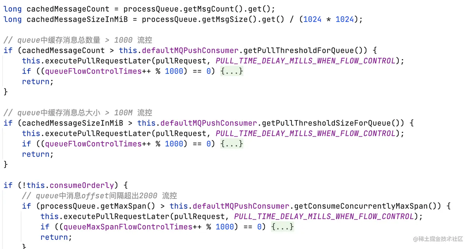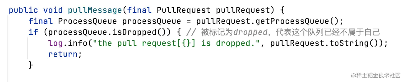 - 为每个分配给自己的MessageQueue创建ProcessQueue,用于缓存pull过来的消息;