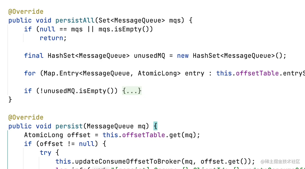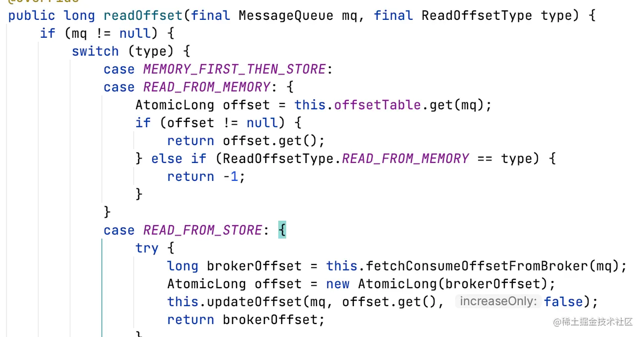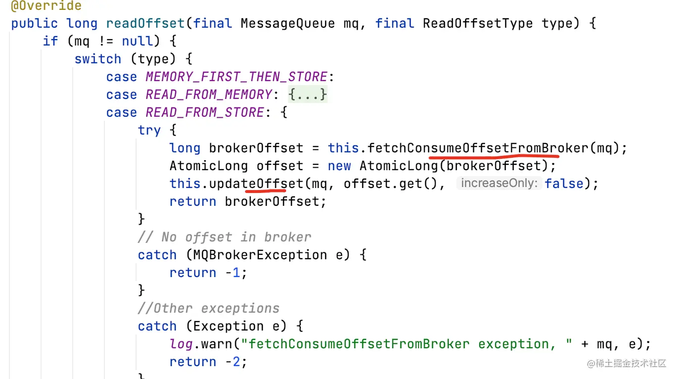 RemoteBrokerOffsetStore#readOffset:支持从内存获取消费offset,也支持从broker实时同步offset。