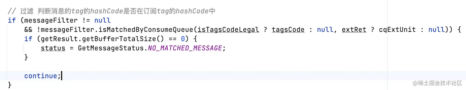 其中codeSet是tag.hashCode集合,和broker中messagequeue呼应。