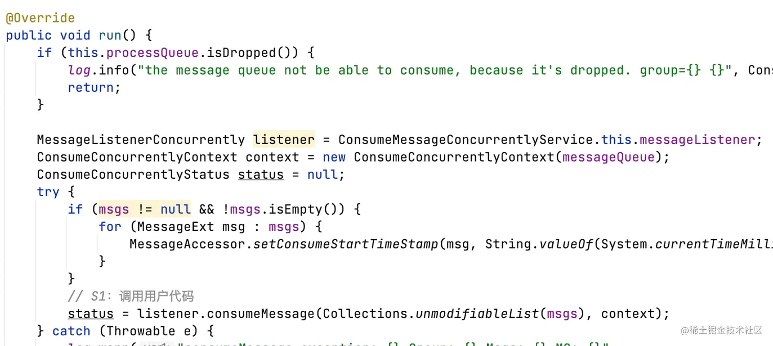 - 执行用户代码MessageListenerConcurrently;