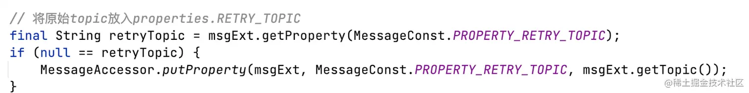 识别message.topic=%RETRY%+自身消费组,替换message.topic=properties.RETRY_TOPIC=实际消费失败的topic。